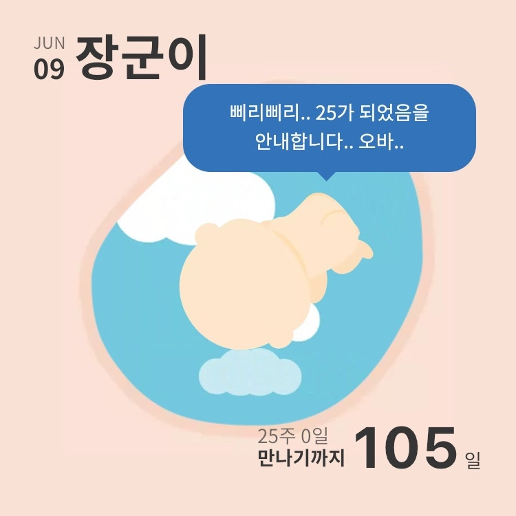생명으로 잉태한 지 25주째다. 세상에 나오기 대략 105일 전이라 한다.