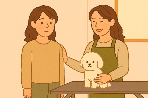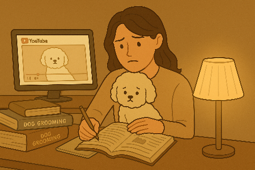 그 친구가 두 마리 미용을 마치고 다른 사람을 도와줄 때,