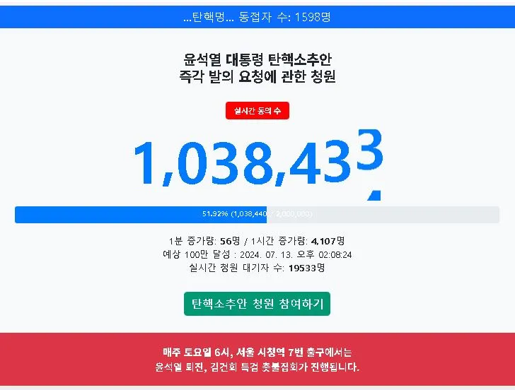 윤석열 탄핵 청원을 하시거나 청원숫자 궁금하신 분은 국회청원 접속하지 마시고 이곳을 접속하세요. 그러면 국회청원 접속자가 줄어 청원이 쉬워집니다. 윤석열 탄핵 청원자 수 바로 확인 가능합니다.