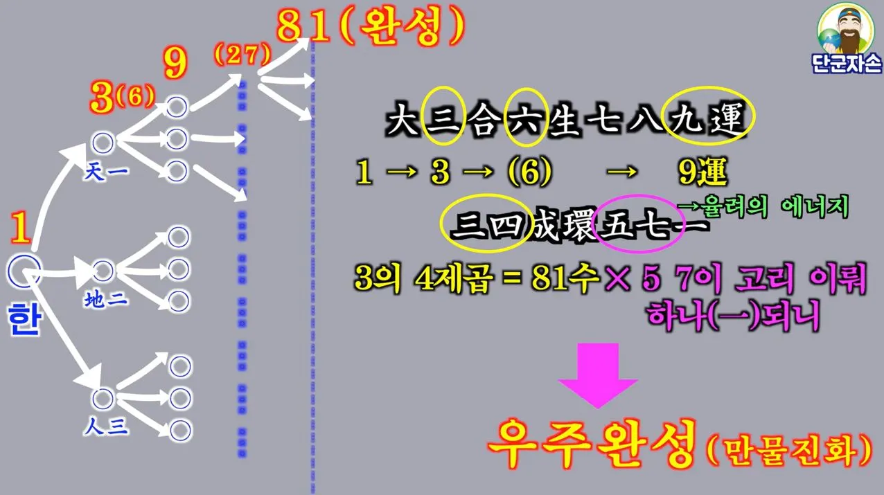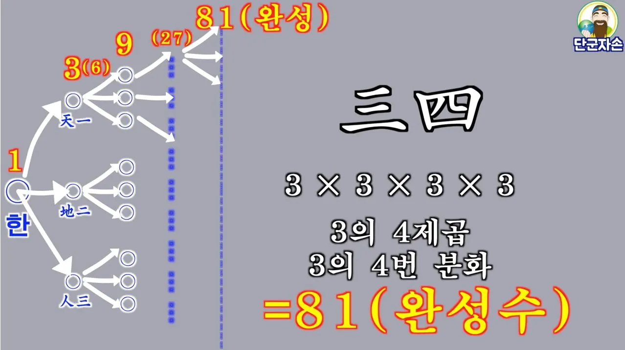 천부경 : 1 -> 3(6) -> 9(27) -> 81(완성)