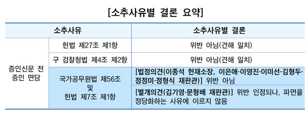 증인신문 전 면담에 대해선… "헌법 위반 아니다"