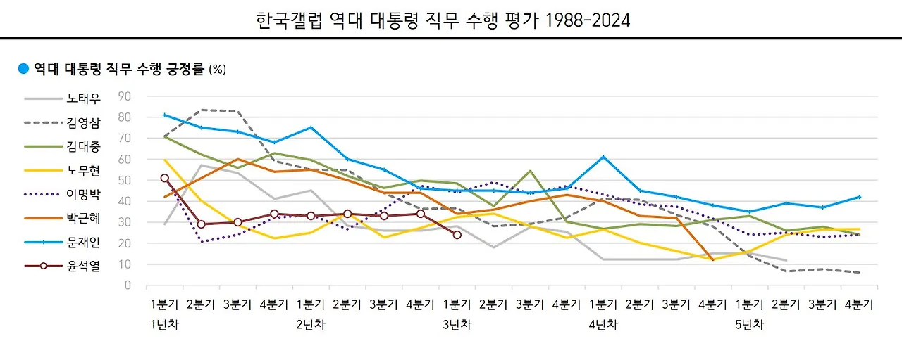 대통령 직무 수행 평가: '잘하고 있다' 23%, '잘못하고 있다' 67%