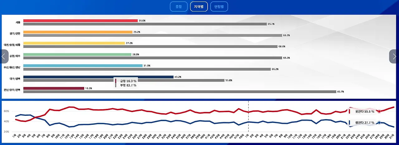 뉴스핌 국정지지도 긍정평가는 27.1% 부정평가는 70.4%