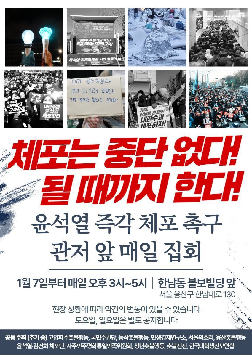 공지] 윤석열 즉각 체포 촉구 관저 앞 매일 집회