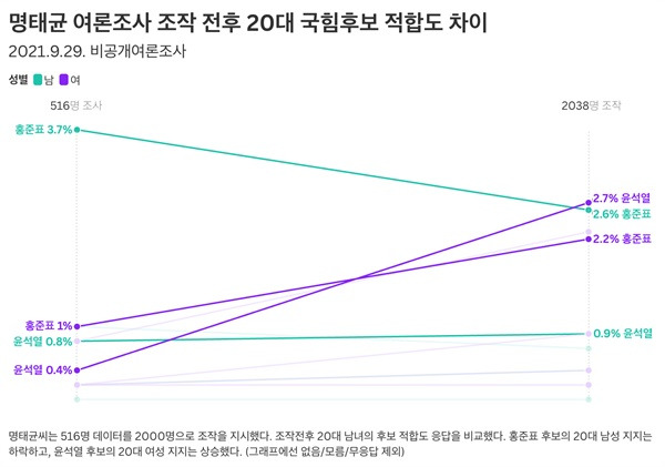 '명태균 여론조사', 윤석열 20대 여성↑, 홍준표 20대 남성↓조작