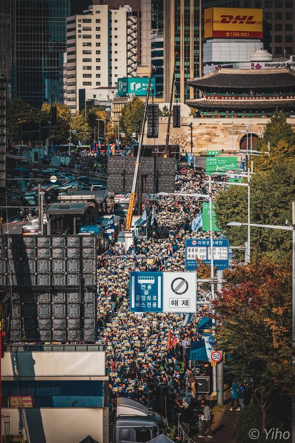 [현장] '김건희·윤석열 국정농단 규탄 국민 행동의 날' 개최... 서울역~숭례문 메워