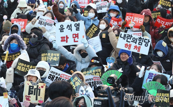 이제 헌재 앞으로!…혹한 녹인 촛불시민 "윤석열 파면"/