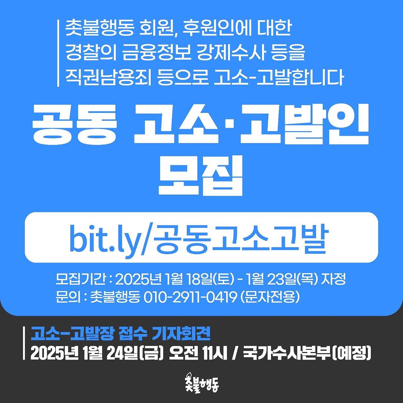 촛불행동 회원, 후원인에 대한 경찰의 금융정보 강제수사 등을 직권남용죄 등으로 고소-고발합니다.