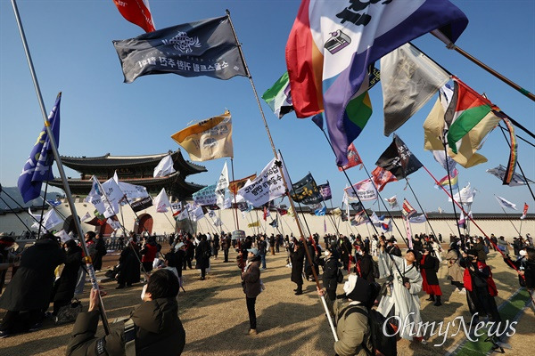 "어사출두" 판소리로 뼈때린 탄핵집회, 또 경찰 때리려 한 극우집회