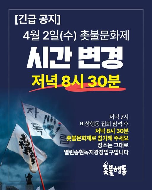�긴급 공지� 4/2(수) 촛불문화제 시간 변경