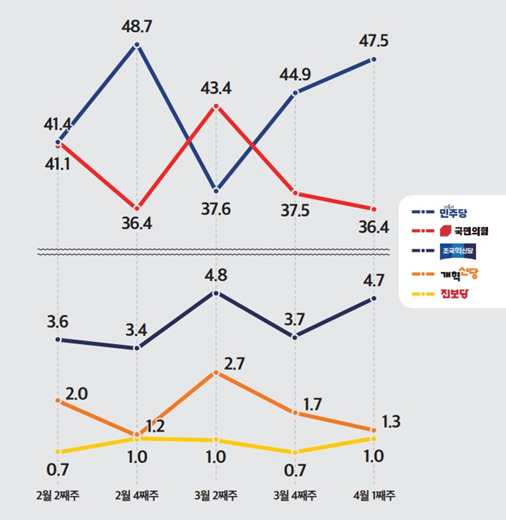 조국혁신당 4.7% 대 개혁신당 1.3% 대 진보당 1.0%