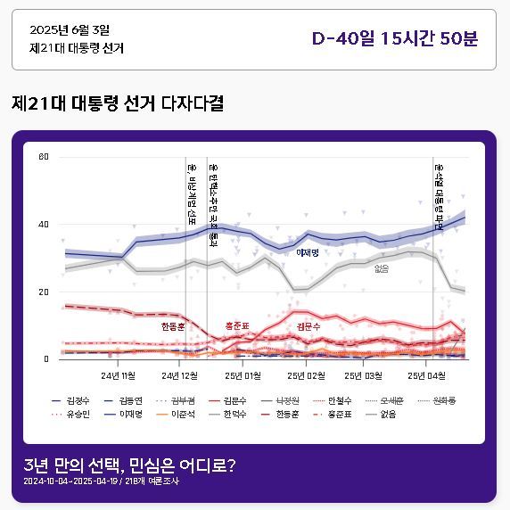 단기 4358년 5월 13일/서기 2025년 4월 24일 /민주정부 대선 D-40