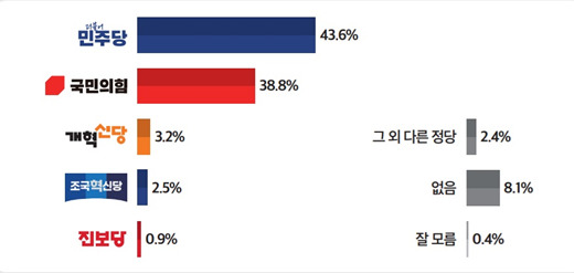 여론조사 꽃 정당지지도 민주48.3%, 내공범당38.5%/