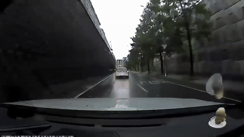 옹벽 이어 콘크리트난간, 승용차 엎치고 덮쳐…뒤따르던 차량 가까스로 멈춰