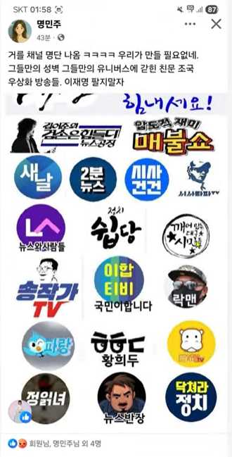 조국을 우상화 하는 유튜브 채널들