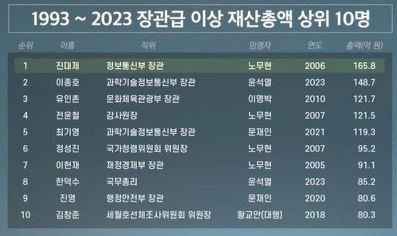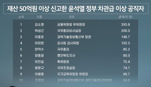 윤석열정부의 부자감세 수혜자는 차관급이상 정부인사