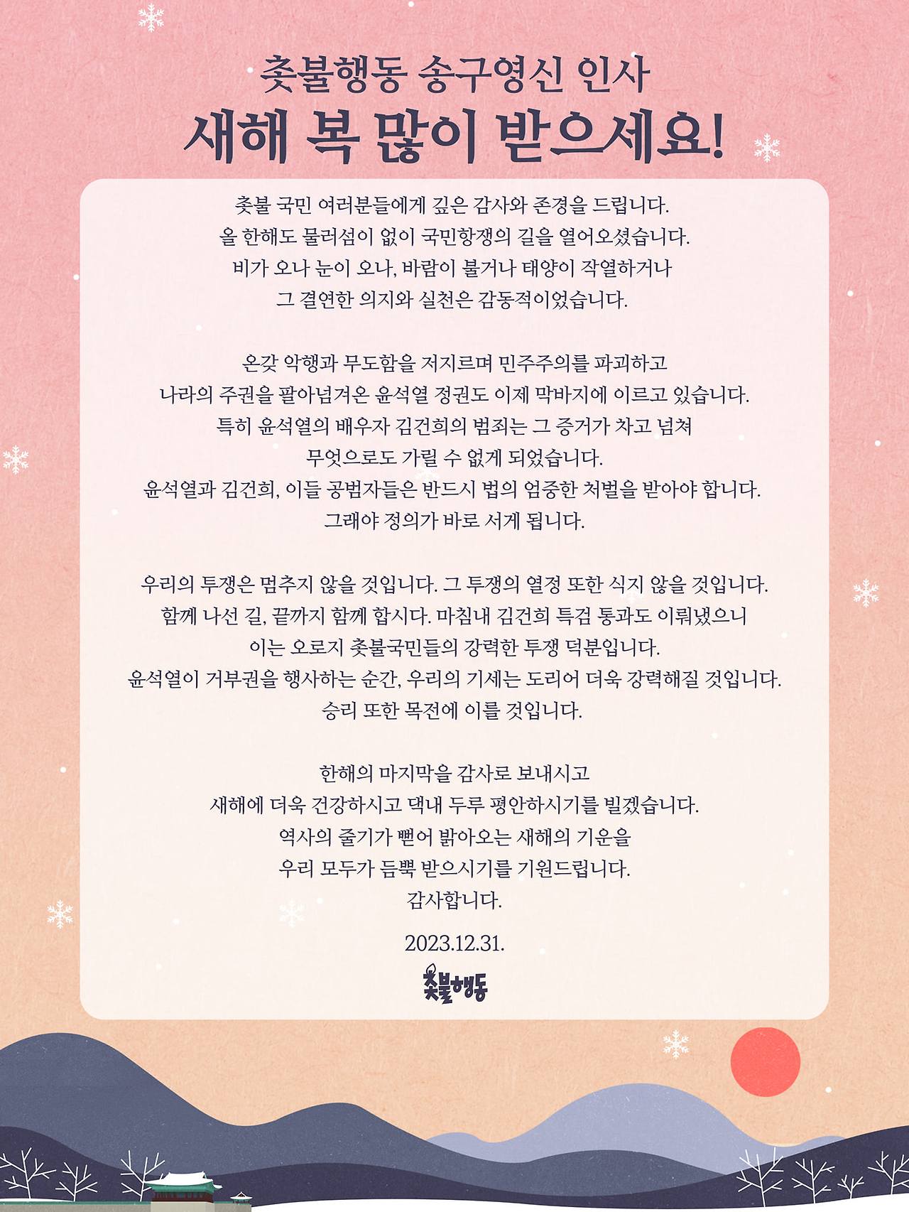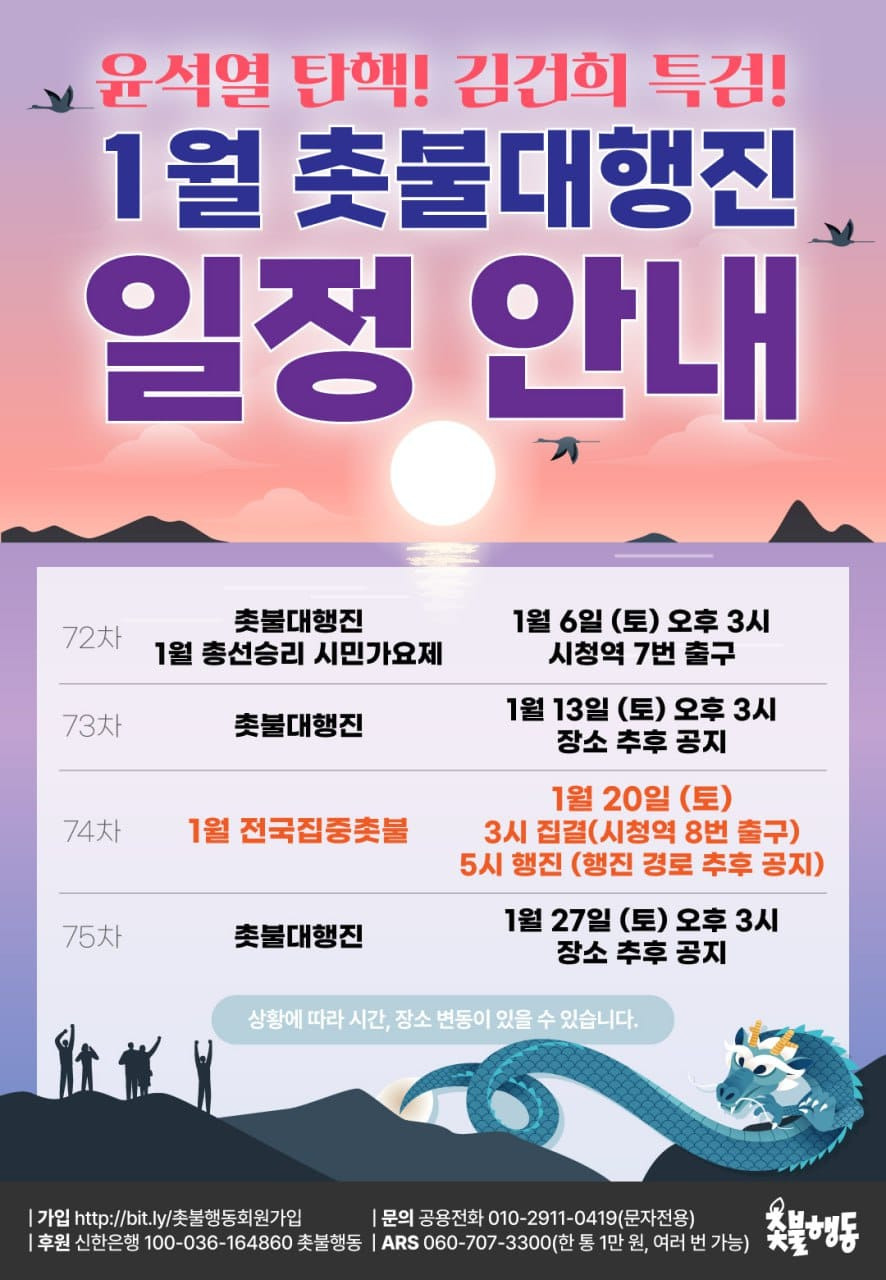 - 공연 : 1월 20일 (토) 오후 3시 전국집중촛불 본무대에 공연