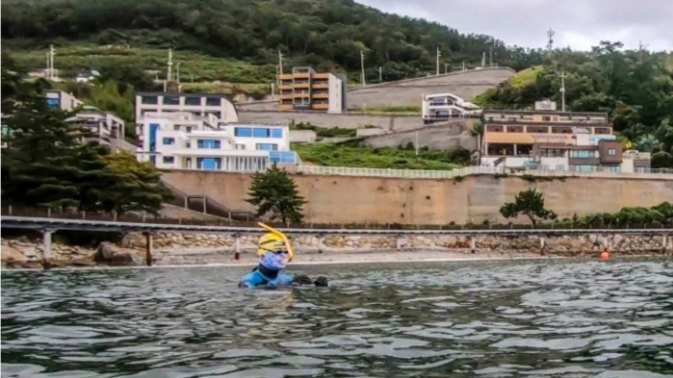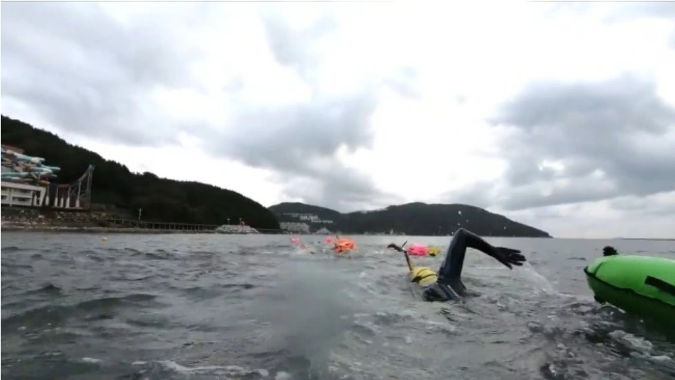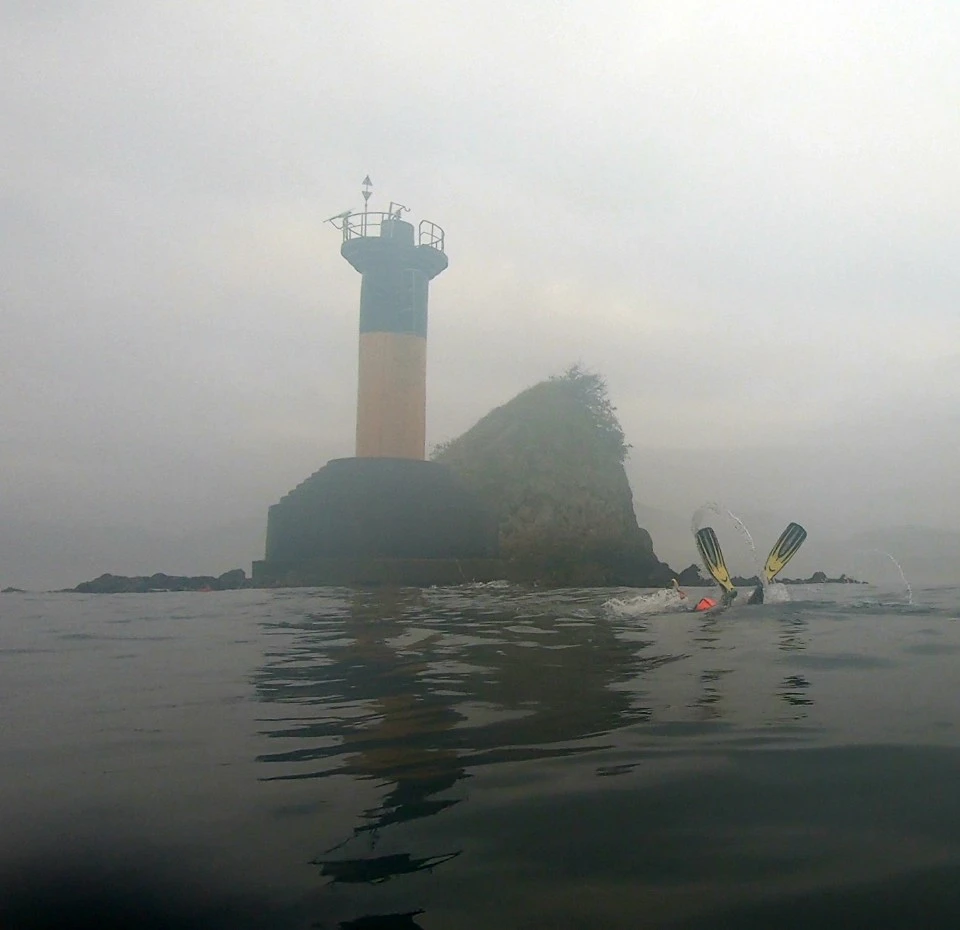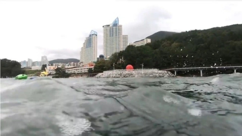 당시는 가을 초입이라 아침 날씨가 조금 쌀쌀하긴 하지만 약간 흐린 날씨에 수온은 23~4도 정도에 풍속이 대략 5m/s, 파고 0.5m 이하로 약간의 파도와 함께 모든 게 바다 수영하기에 딱 적당한 조건이었다.