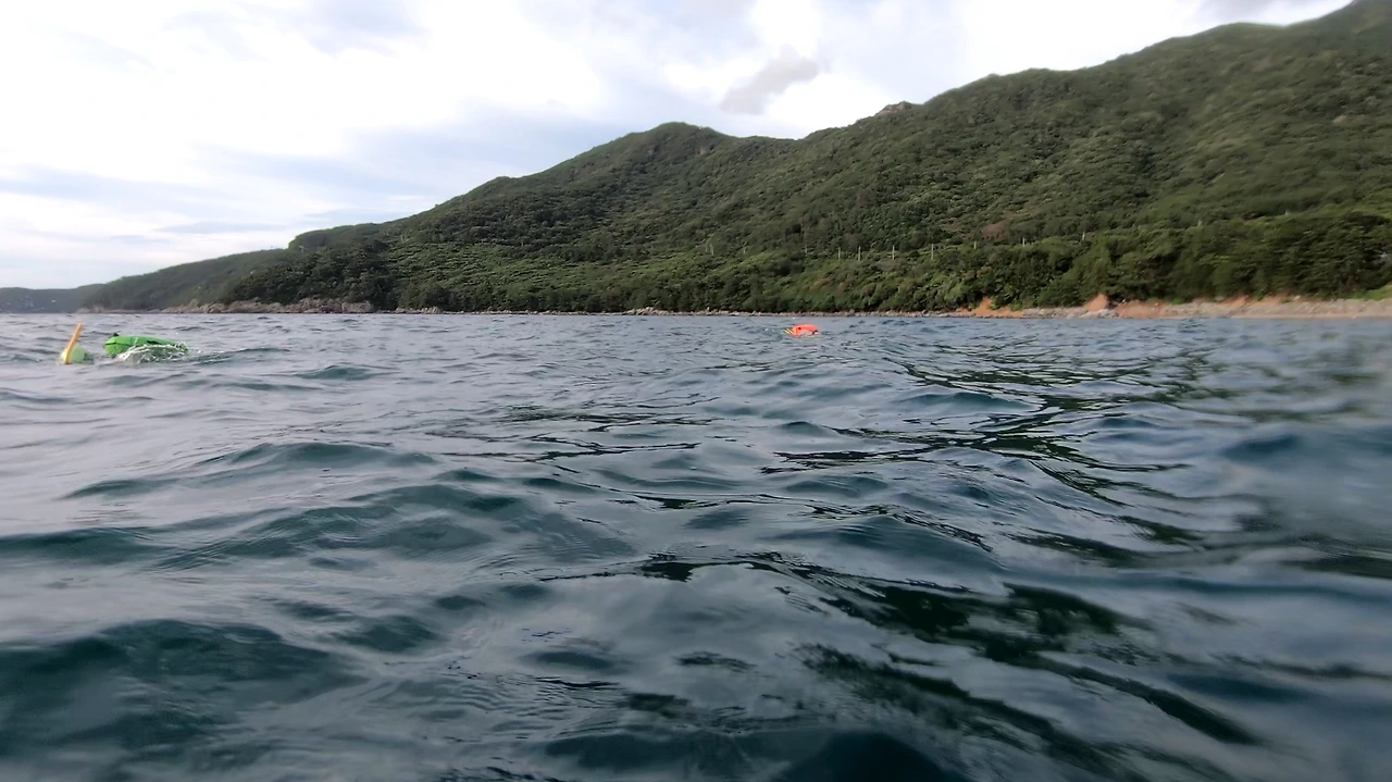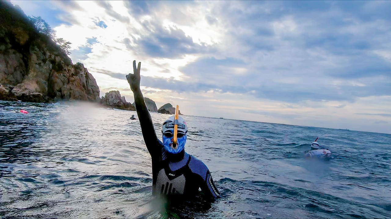 머리가 어질 해지던 순간, 다행히도 누군가의 제안(혼자 돌아갈 수도 없고 아마 다른 분들도 비슷한 상태가 아니었을까?)에 의해 즉석 투표를 거쳐 다시 한번 만장일치로 이쯤에서 그만두고 중간 회귀 수영을 하기로 했다.
