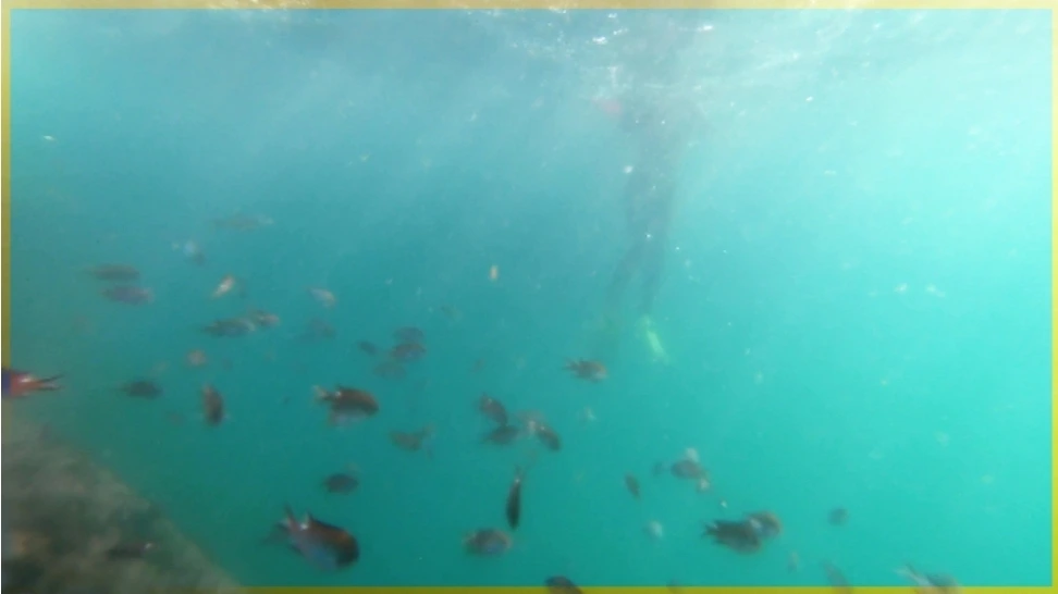 바닷속 경치 또한 장난이 아니다. 물이 맑기도 하거니와 가을을 준비(ㅠㅠ) 하고 있는 전어 치어들이 마치 자기 놀이터인 양 빼곡히 놀고 있다.