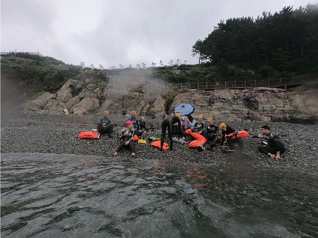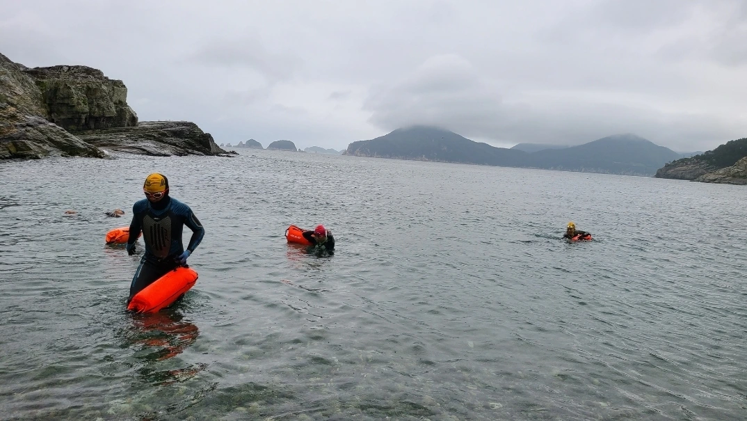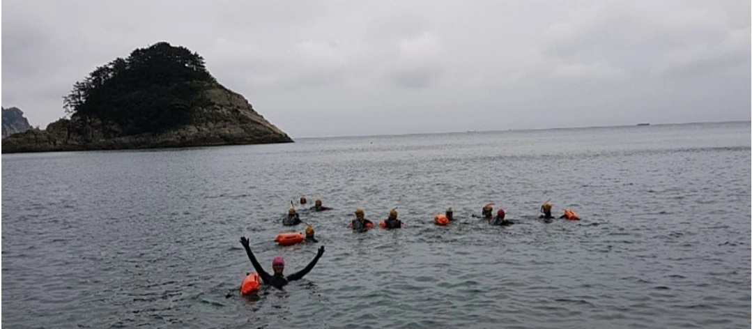 어종이 풍부해 중간중간 낚시하시는 분들이 많아 낚싯대에 드리운 낚싯줄도 경계 대상 중의 하나다. 사실 낚싯줄이 수영을 하고 지나는 사람에게 위험하다기보다 월척을 기대하며 오랜 기다림에 지친 분들에겐 우리 같은 수영객은 절대 반가운 손님은 아니다