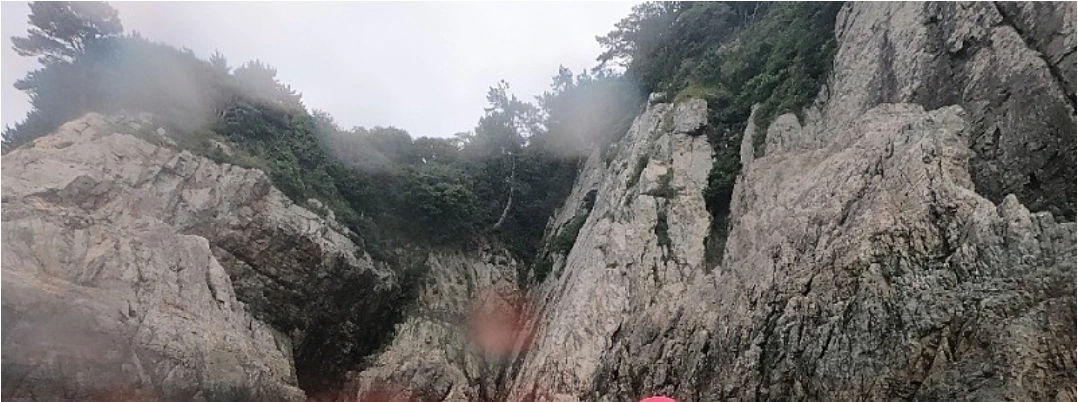 비 오는 날 신선대는 아름다운 자연을 덤으로 선사한다. (사진에 소질이 있는 동호회 분이 신선대에서 작은 몽돌로 내려가는 길에 예쁜 사진을 몇 장 올려 주셨다.)