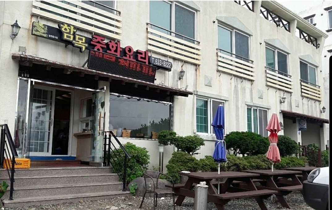 본래 계획은 해수욕장으로 내려가는 경사로 앞에 '함목 중화요리'라는 식당이 있는데, 그 식당의 도움을 받아 수영 후 이른 점심을 그곳에서 하는 대신 차를 잠시 주차할 요량으로 문을 두드렸다.