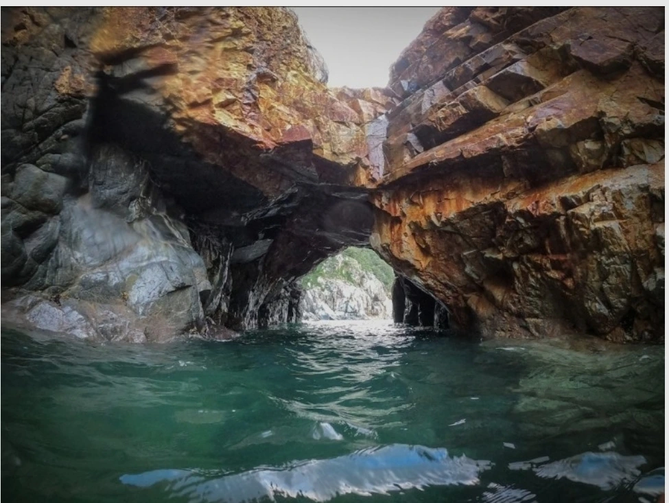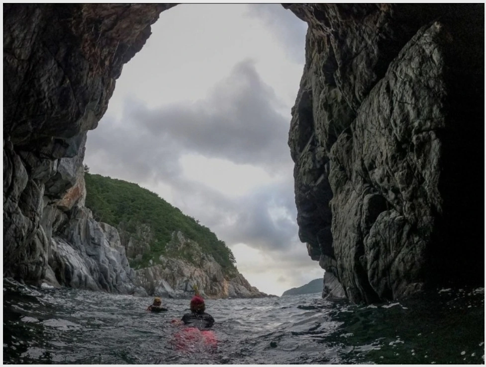 - 수정봉 밑에 있다 하여 우리 동호회에서 작명(?) 하였다. '수정동굴'이라 검색하면 다른 곳이 나온다- 을 들렀다가, 윤돌섬을 찍고 -계획은 항상 바뀐다 ^^ 결국 윤돌섬을 한 바퀴 돌았다-구조라 해수욕장으로 돌아오는 여정이다.
