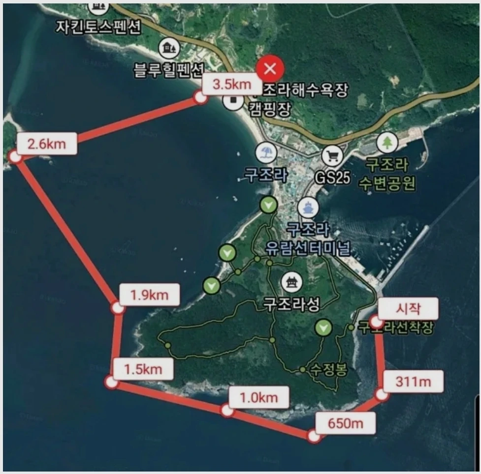 ※ 구조라 방파제에서 대략 1km 지점 (수정 동굴에 들어가기 앞서 잠시 커피와 에너지 바로 체력 보충)