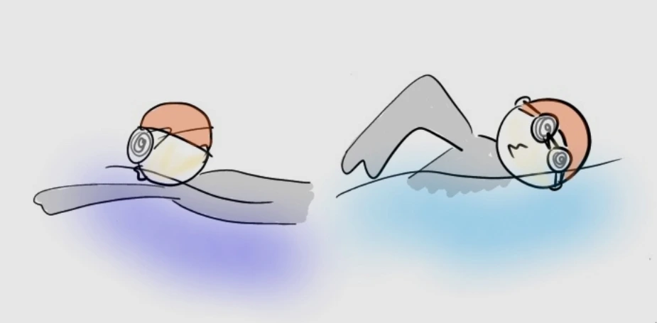 그래서 내린 약간의 잔머리랄까? 측면 호흡을 위주로 헤드업은 간간히 번갈아 하면서 체력을 아끼기로 했다.
