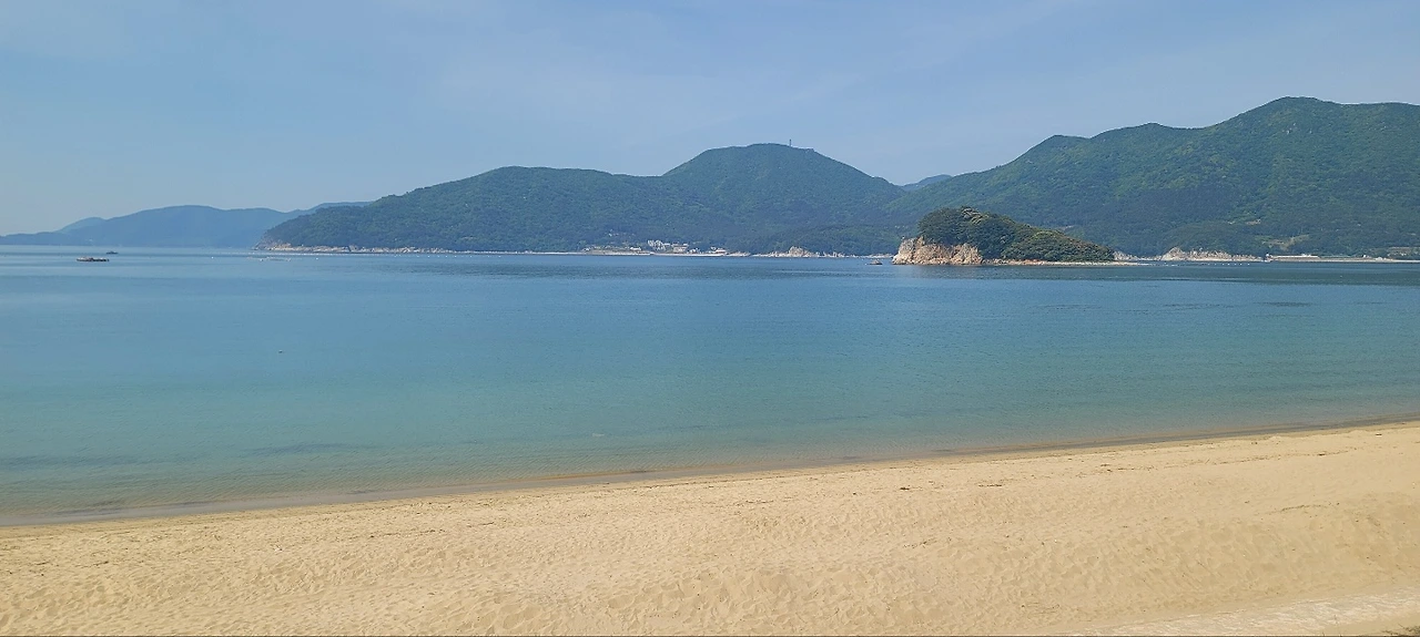 거제 구조라 해수욕장과 그앞의 윤돌섬
