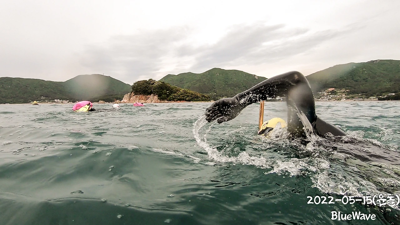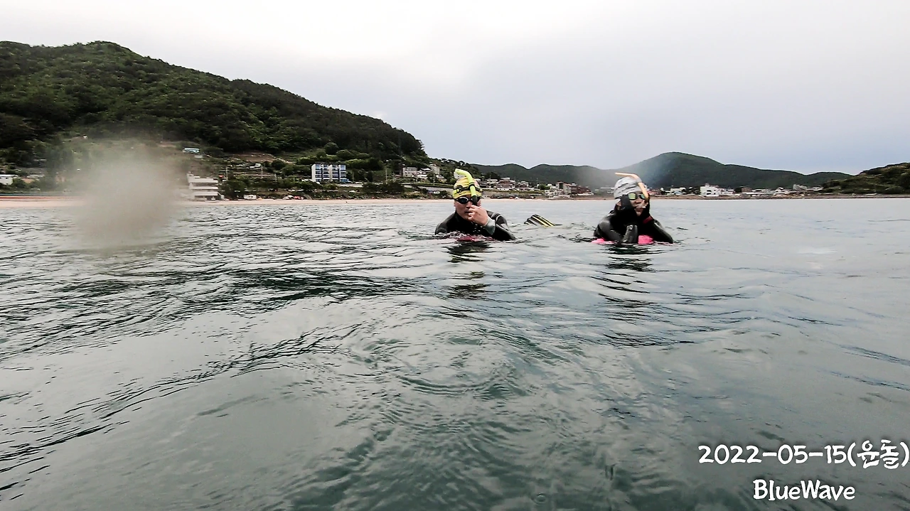 5월 7일 바깥 날씨는 햇볕이 쨍쨍하고 20도를 웃도는 날씨라 슈트를 입는 동안 더위를 느끼는 날씨였다. 모두들 이구동성으로 하는 말이 '빨리 물에 들어가고 싶다'. 수온은 당일 15도 정도로 처음엔 약간 추위를 느낄 만도 하지만 이내 팔 꺾기 몇 번으로 더위와 추위를 동시에 가시는 바다수영의 맛을 제대로 느낄 수 있는 상태가 되었다.