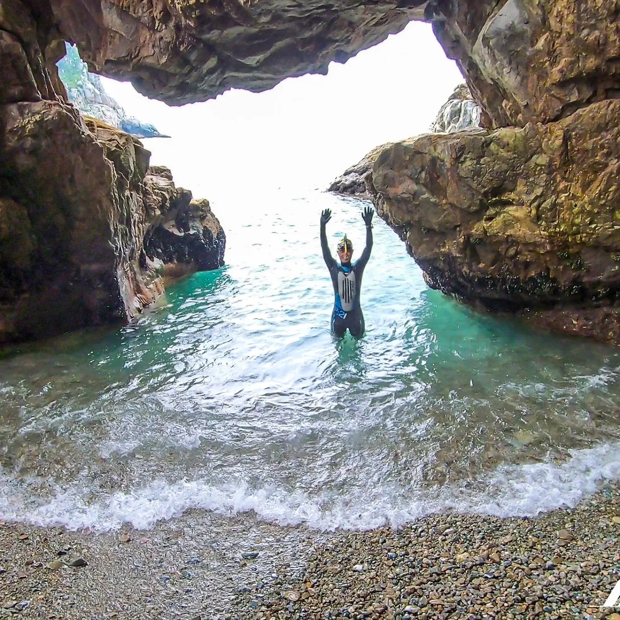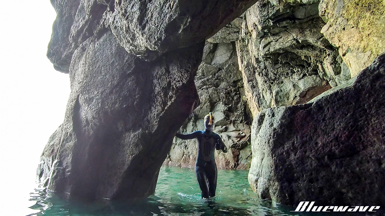 특히 다대-형제섬 구간에서 눈이 부시도록 아름다운 해식 동굴과 그 안에 숨어있는 몽돌 해변을 발견하고 (수영이 아니면 갈 수 있는 곳이 아니니 발견했다는 표현이 맞는 것 같다) 중간 지점에서 돌아와도 대략 6.5km로 반나절은 족히 걸릴 수 있는 거리기를 대략 10여 명의 바다 수영꾼들이 의기투합하여 전투식량까지 (요즘은 세상이 좋은 게 캠핑이다 뭐다 해서 생활 패턴이 바뀐 게 그냥 생수만 부어도 먹음직한 한 끼 식사가 나온다) 준비하여 간조에 때맞춰 형제섬 등대 맞은편에 있는 이 해식동굴 안 몽돌에서 자연을 즐길 계획이었다.