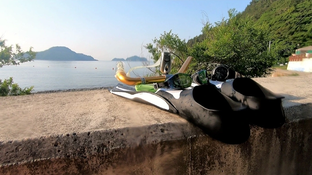 해변에 상륙할 때 특히 조개류가 붙어 있는 바위는 피해야 한다. 날카로운 곳에 닿으면 쉽게 찢어진다. 하긴 처음 몇 번 찢어질 땐 마치 내 살이 찢어지는 것 마냥 마음이 아팠는데, 이제는 두벌의 슈트 다 여기저기 고무 땜질로 성한 곳이 없다.