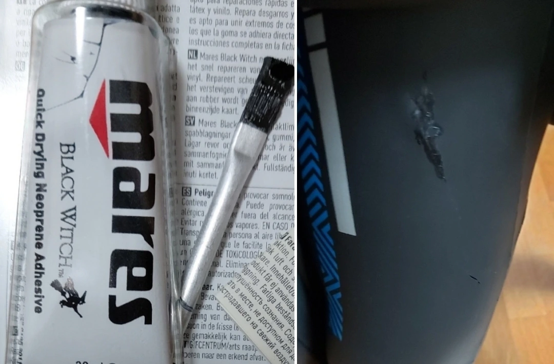 수선 요령은 별다른 비법은 없다. 그냥 일반 본드 붙인듯 발라주면 되고 혹 손이 붙더라도 고무 재질이라 시간이 지나면 쉽게 떨어진다.