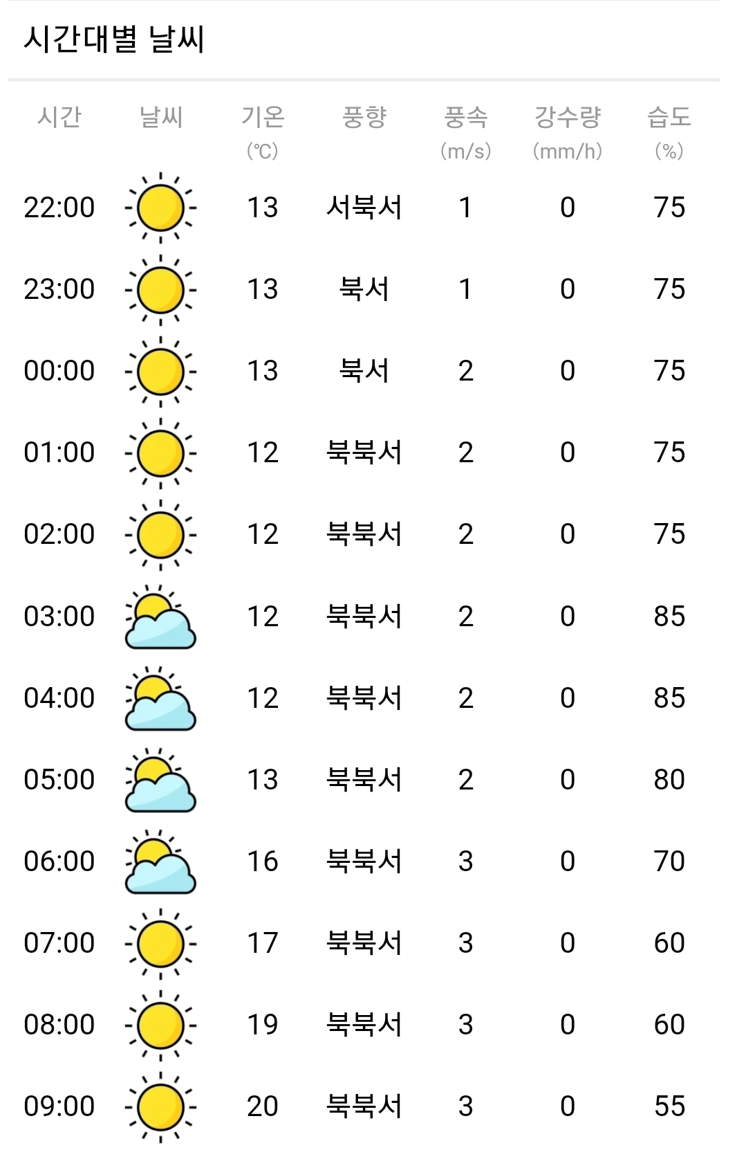 이렇게 바다 날씨를 예측한 다음 최종 확인은 하루 전날 날씨 앱으로 기온과 풍속을 확인한다