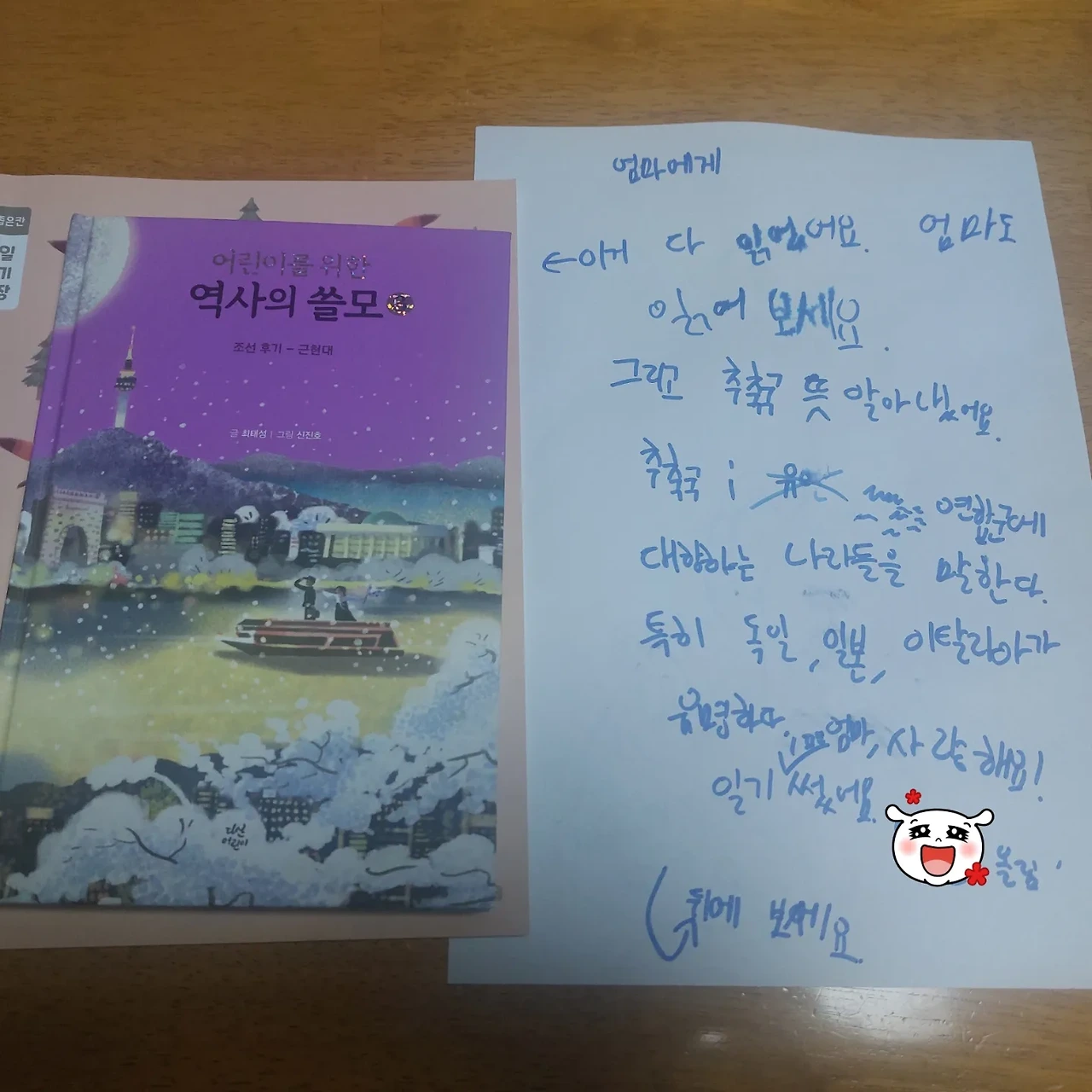 나름 편안해진 마음으로 문을 닫고 부엌의 식탁을 찾았습니다. 식탁 위에 휘갈겨 쓴 편지가 놓여 있습니다. 당연히 아무거나 군이었습니다. 사랑한다고 했습니다. 하루 동안 우후죽순으로 생겨났던 섭섭함은 눈 녹듯 사라졌습니다. 저도 잠들기 전 모든 감정을 내려놓고 편안하게 잠들 수 있겠습니다. 아무거나 군에게 감사한 깊은 밤이었습니다.
