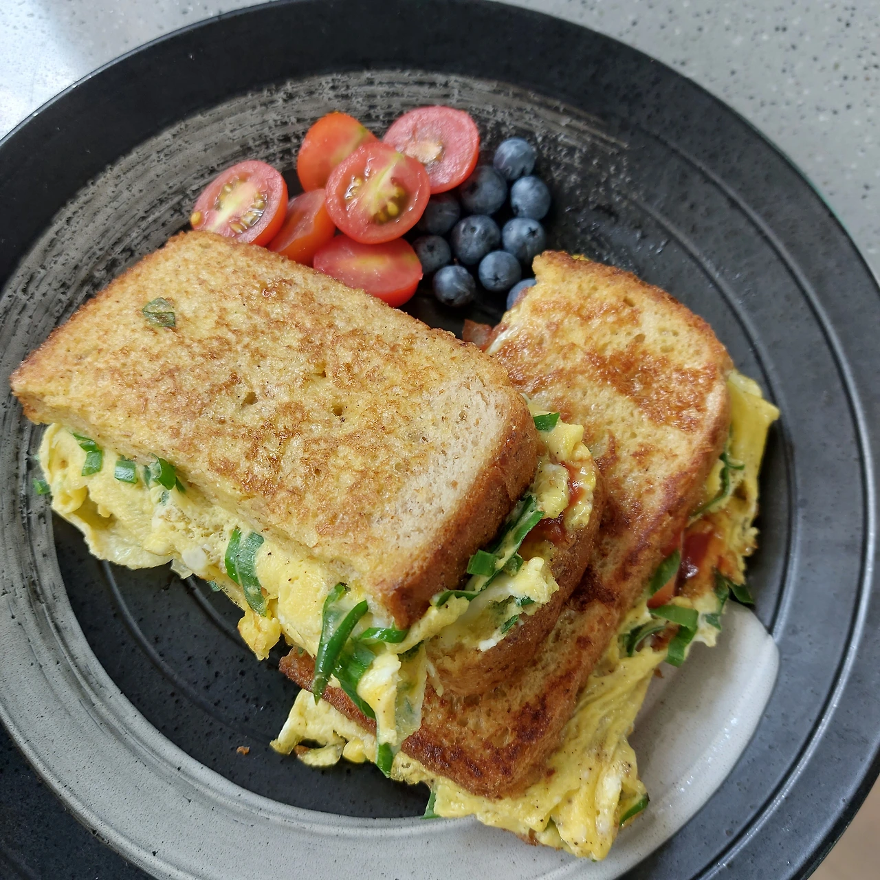 토마토는 정말 설탕을 뿌린 듯 달달했고 블루베리는 새콤달콤해 살짝 느끼할 수 있는 샌드위치와 천상의 맛을 선물 받았습니다. 주말 아침 이토록 여유롭고 여유롭게 간단했지만 어떤 음식보다 풍성함을 맛보고 즐겼습니다.