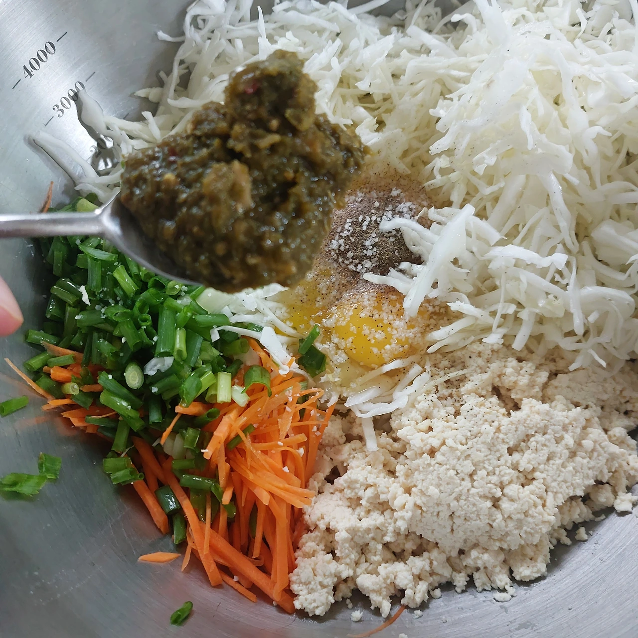 3. 모든 재료에 계란 3알을 넣어 섞어 구워냅니다.
