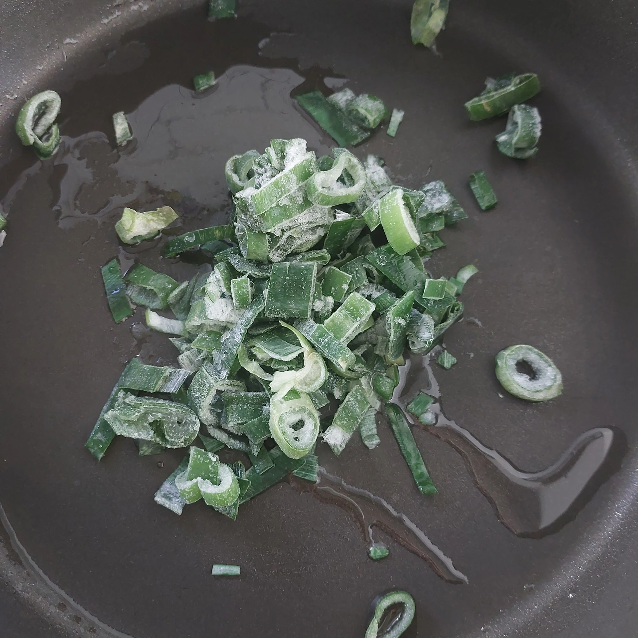 오늘은 냉동실에 저장되어 있는 대파의 하얀 대가 없어 초록초록 줄기를 사용했습니다.