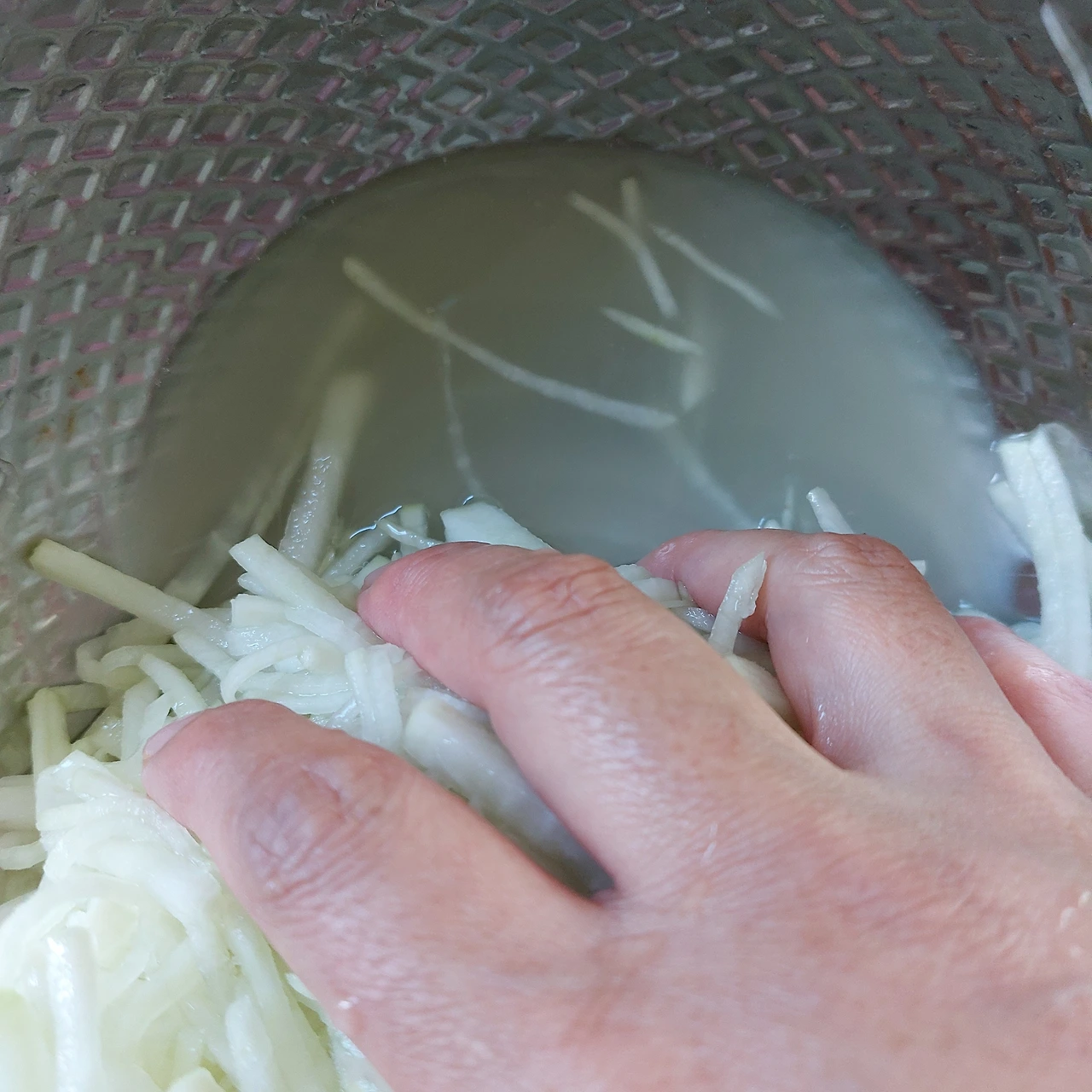 소금과 설탕에 절여져 생긴 물은 꼭 짜 버립니다.