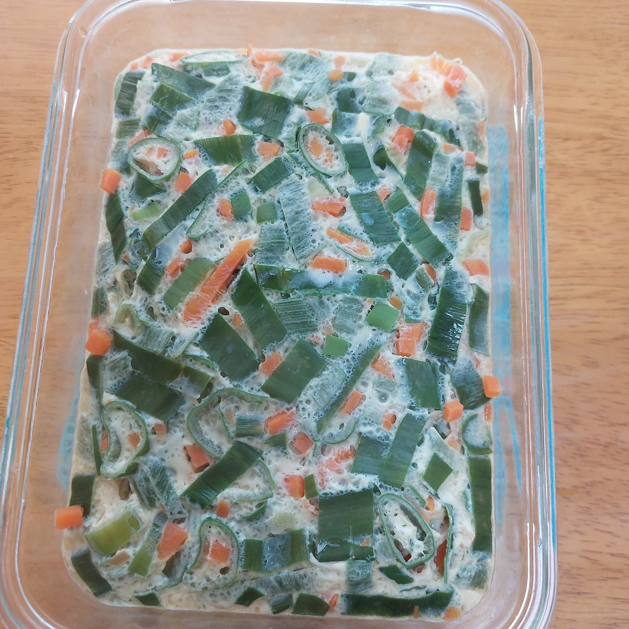 유일한 홍일점 당근입니다. 세상 요리하기 만만한 계란찜의 데커레이션으로 먹스러움을 한층 끌어올리는 데 사용했습니다. 이렇게 아침은 볶고, 굽고, 쪄낸 반찬들로 한 상 가득 채워 진수성찬이 되었습니다.