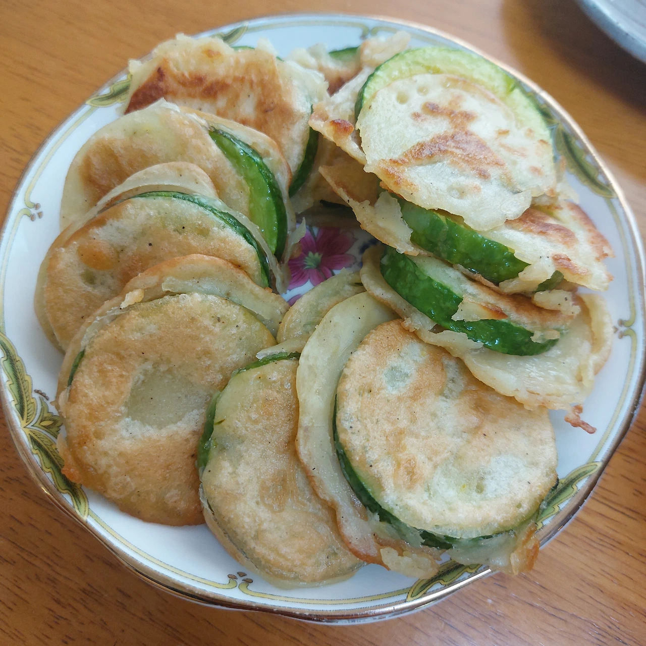 애호박은 예쁜 보름달같이 둥글게 썰어 하얀 밀가루 옷을 입힙니다. 여기에 밀가루 반죽외투를 걸쳐 전을 부쳤습니다. 앞뒤 노릇노릇하게 구워내면 딴 반찬은 그냥 조연이 되는 겁니다.