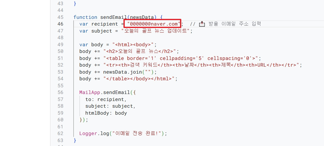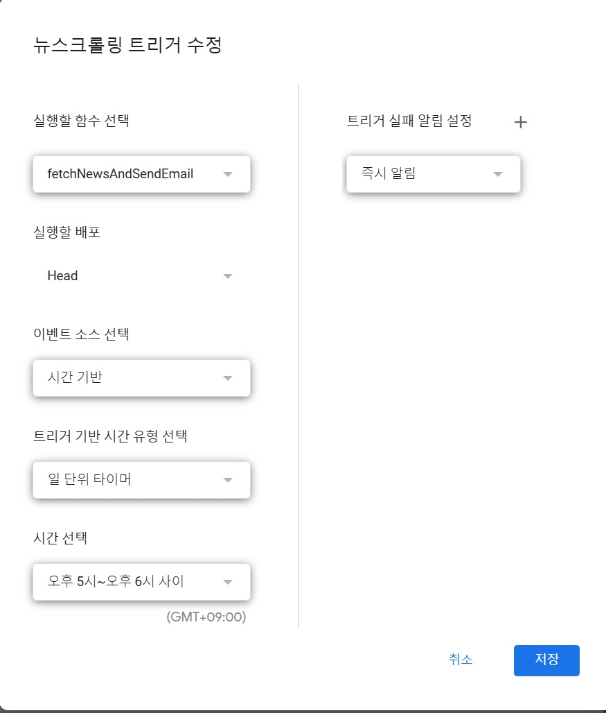 - 실행할 함수 `fetchNewsAndSendEmail`
