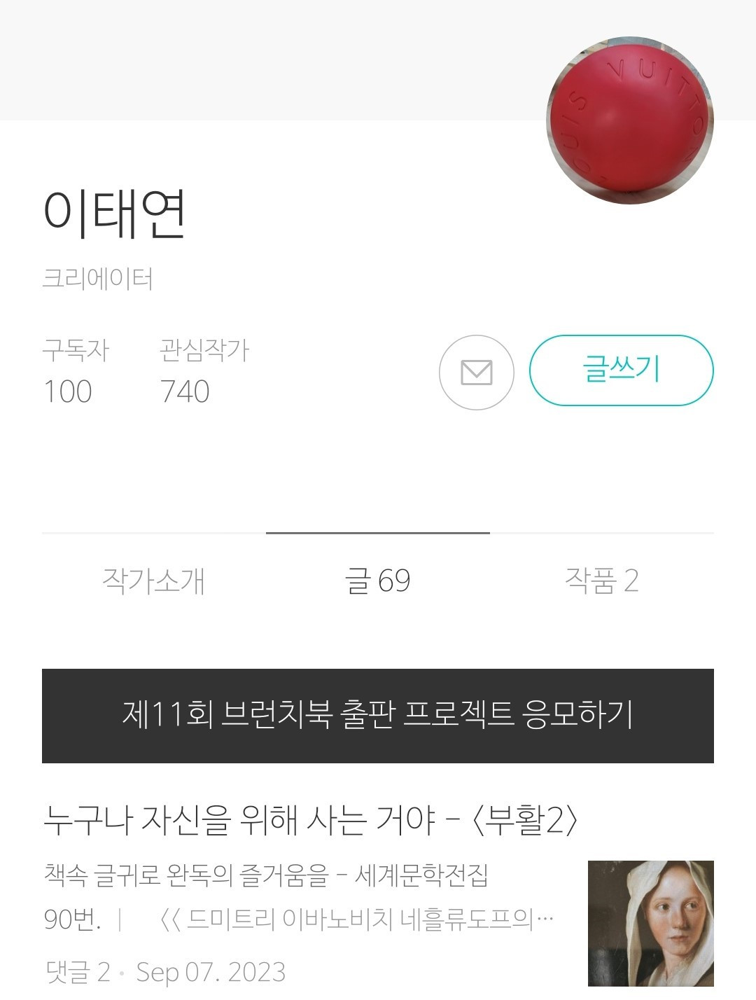 2022년 5월. 브런치 작가가 되었습니다. 작가이지만 계간지나 월간지에 평론이나 수필이 실릴 뿐, 제 이름으로 된 책은 아직 없었습니다. 책을 낼 기회가 있었지만 글의 완성도에 만족하지 못해 보류중이었구요. 때문에 주변사람들로부터 "책은 냈지?"라는 질문을 받을 때마다 멋적었었는데, 이제 '브런치작가'라고 하면, "오~ 그거 선정되기 어렵다던데?" 하며 인정을 해 주더라구요.