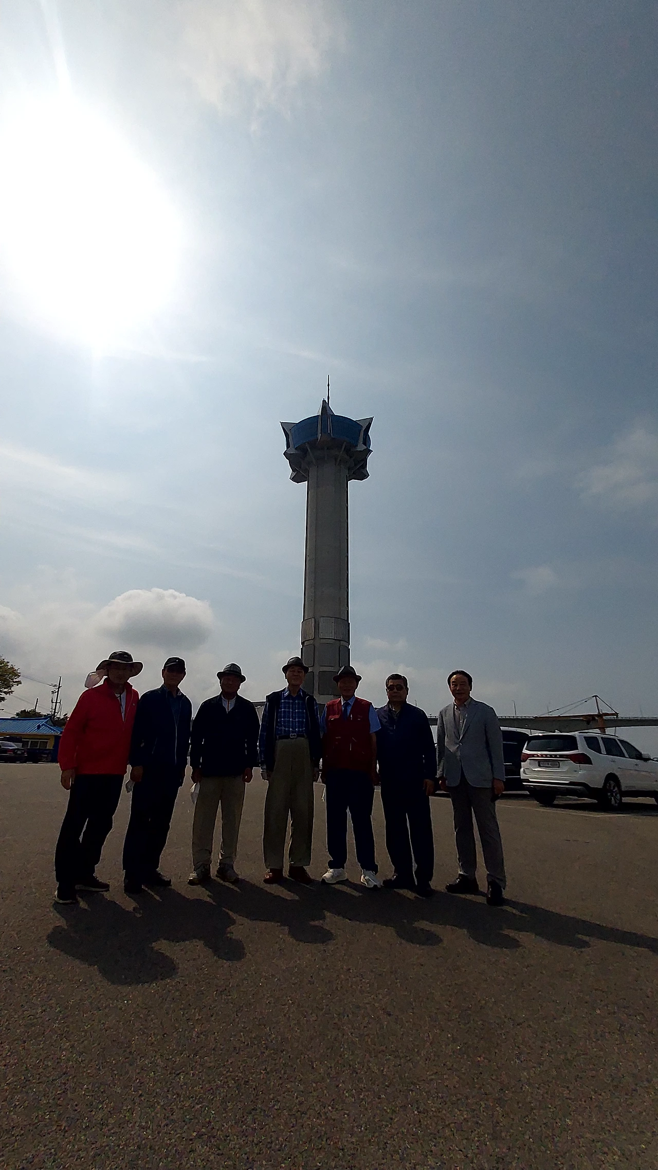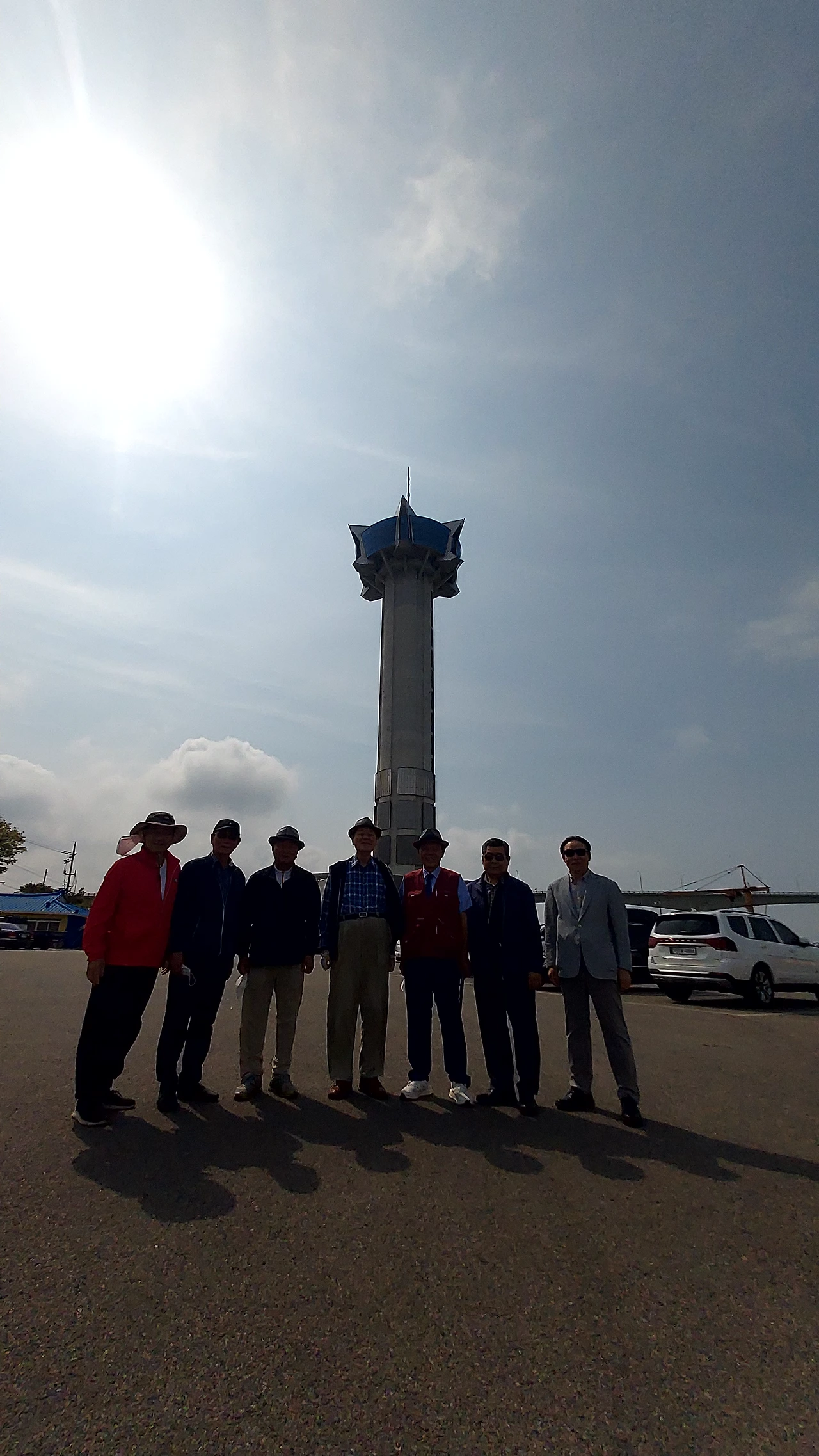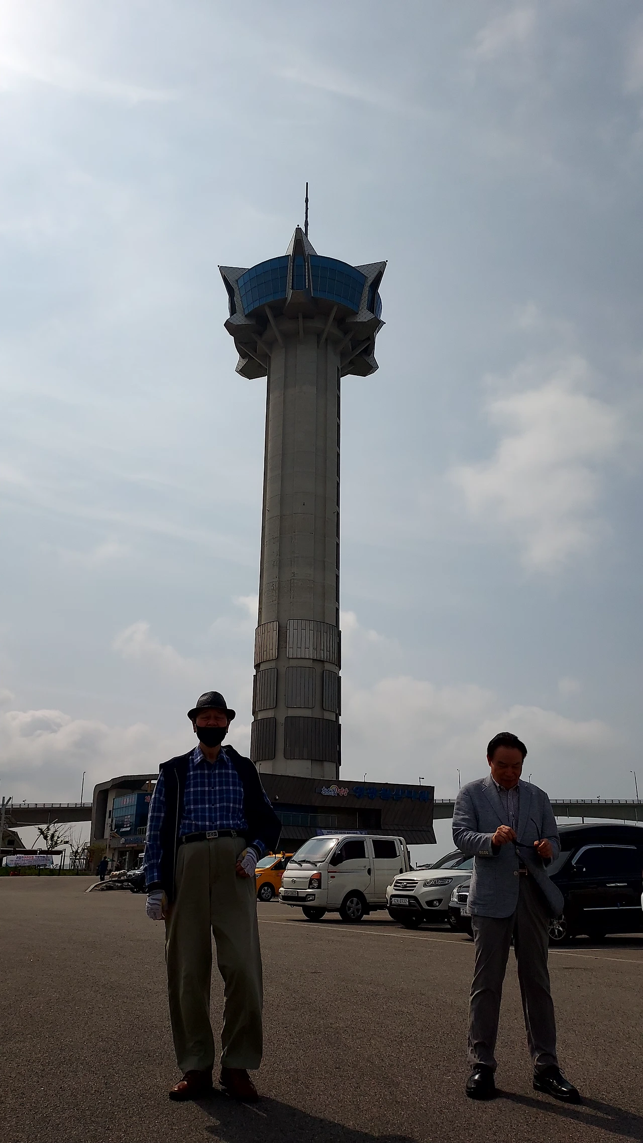 칠산 타워를 배경으로 사진을 찍었는데 역광이어서 얼굴이 어둡다.