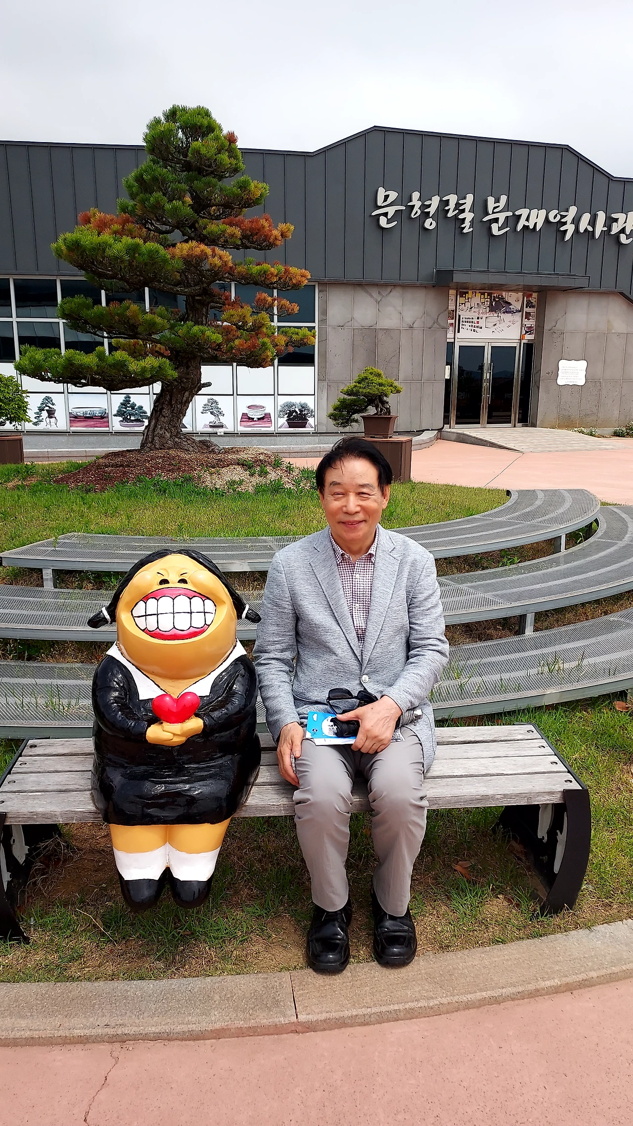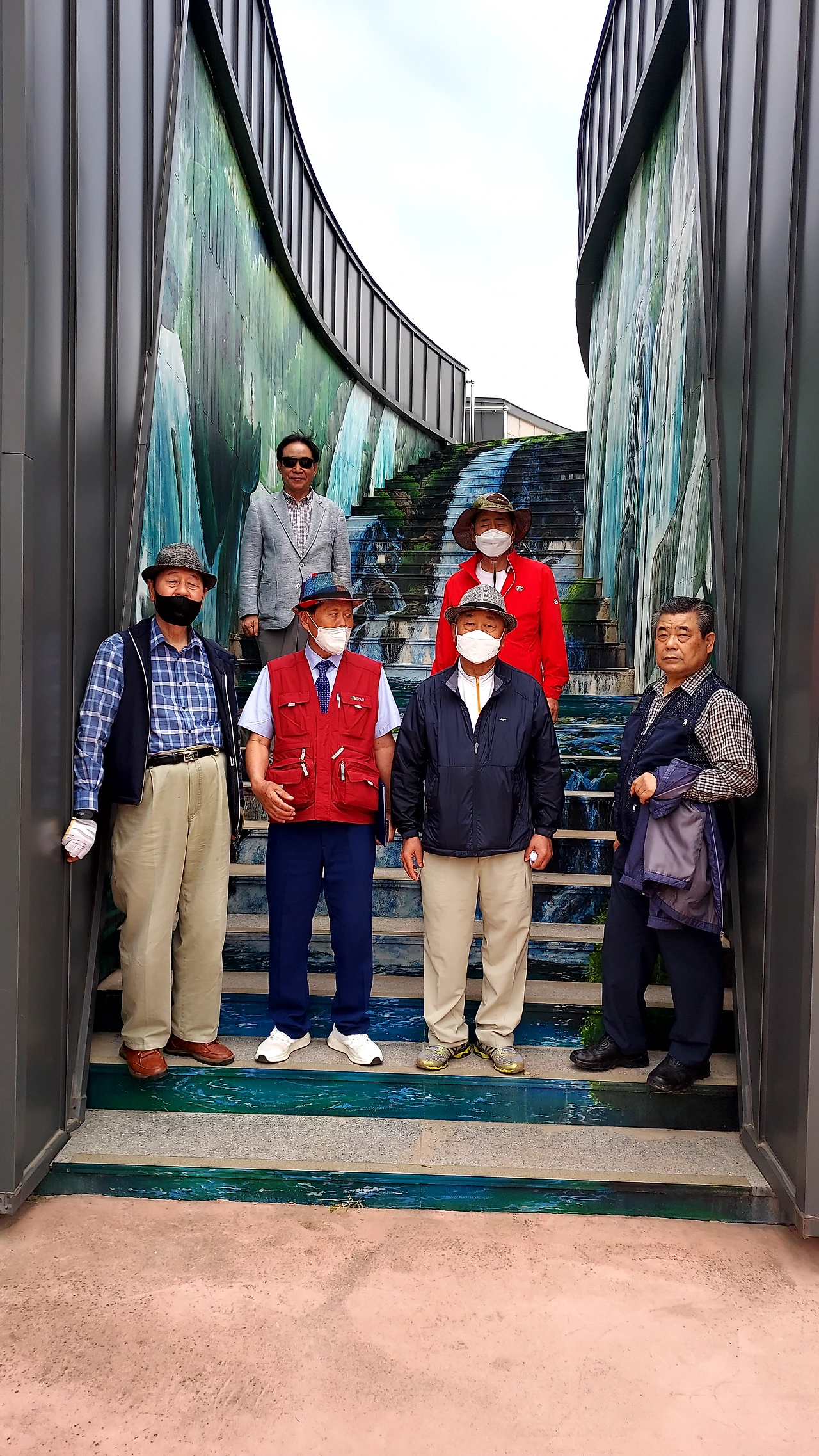 갯벌 과학관 앞에 왔다.갯벌을 바라보고 서 있는 건물 벽면에 갯벌에 사는 작은 동물이 캐릭터로 그려져 있다.