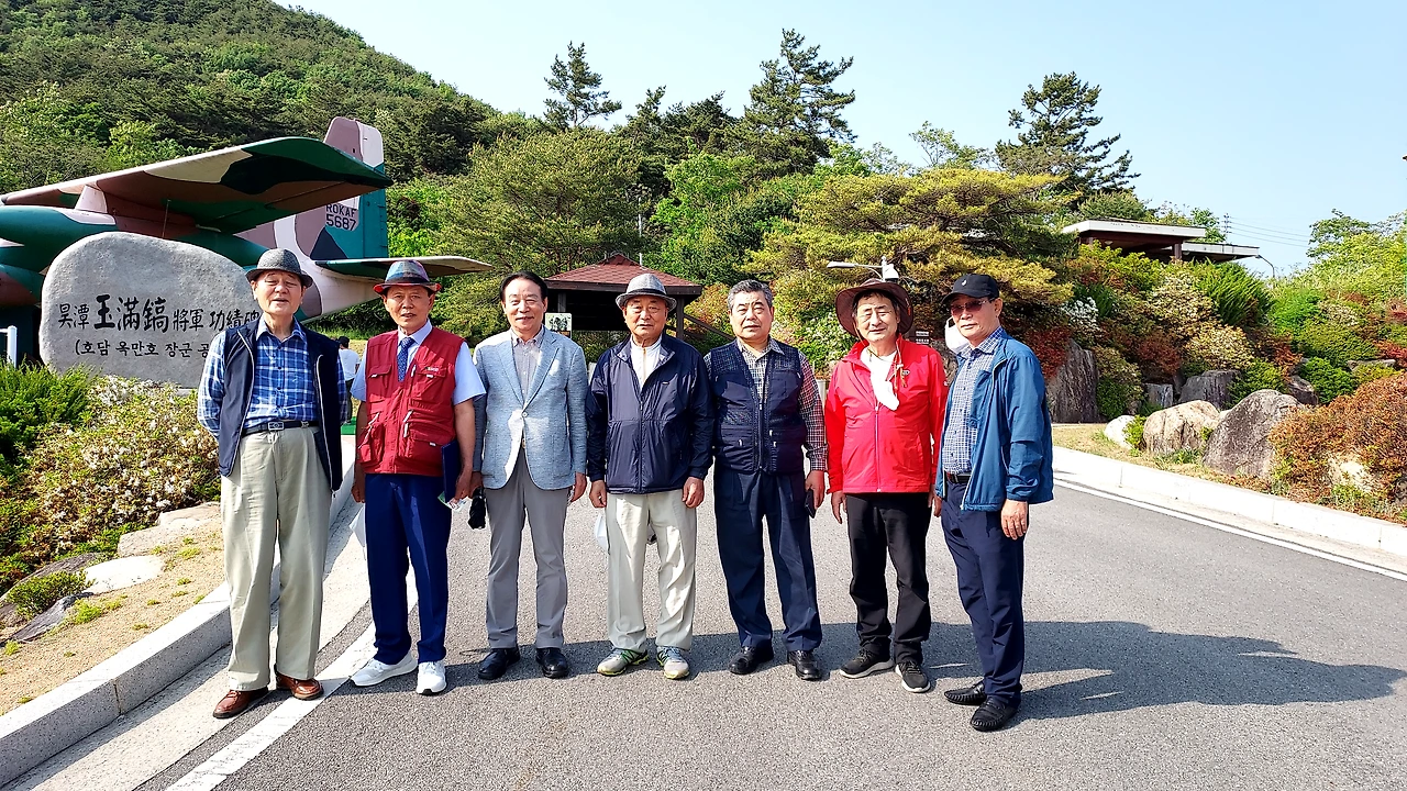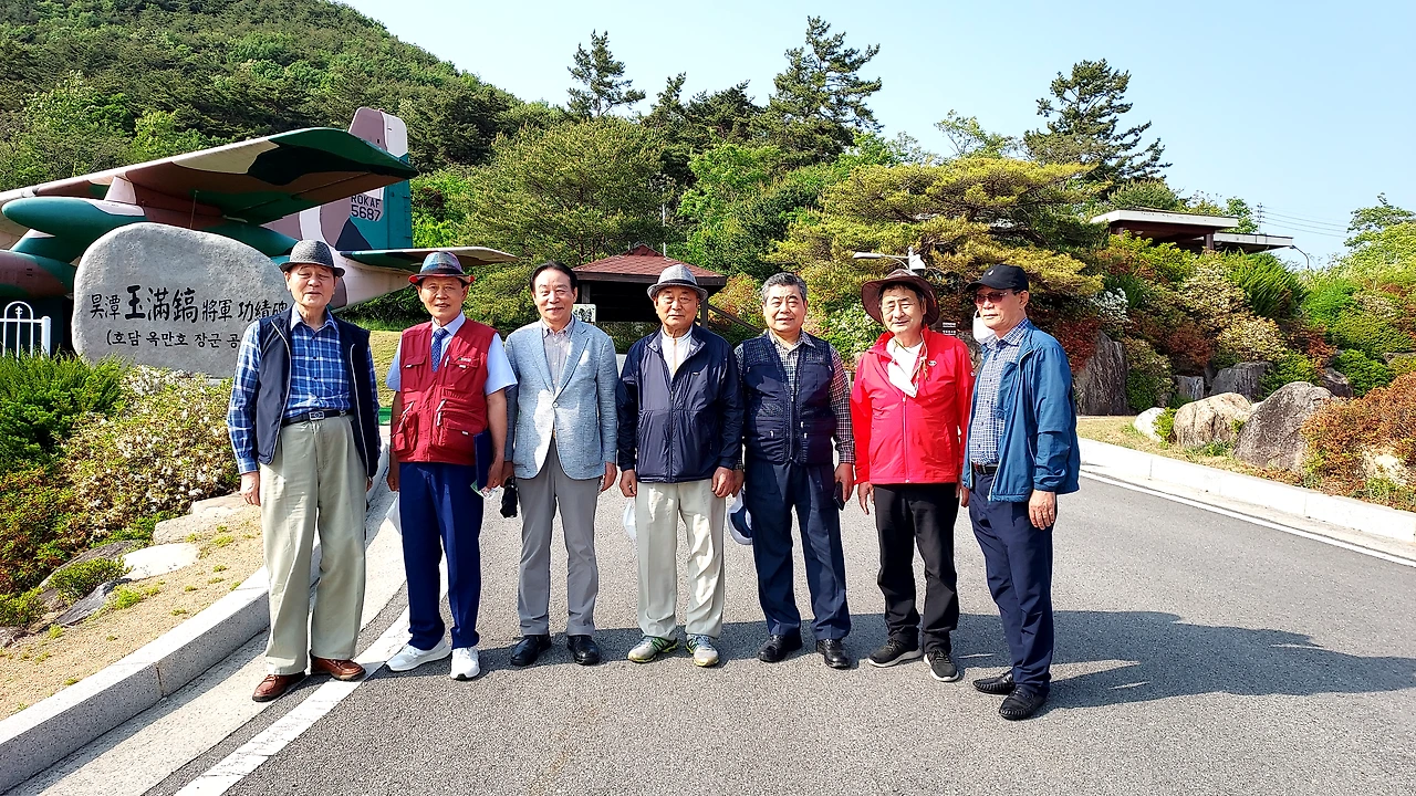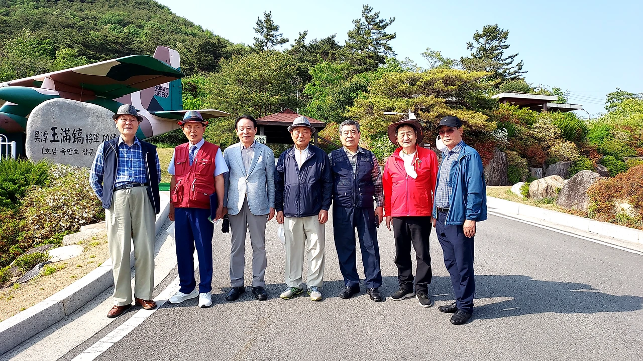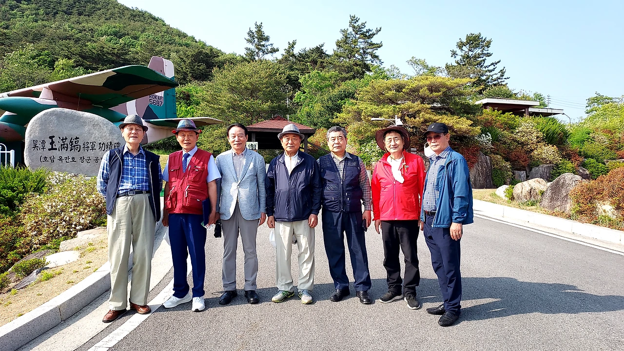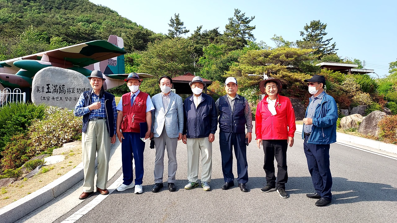 관광에 앞서 사진을 찍었다. 옥만호 장군의 공적비를 비경으로 하여 옆으로 늘어섰다. 마침 지나가는 분이 있어서 부탁했더니 흔쾌하게 응한다.