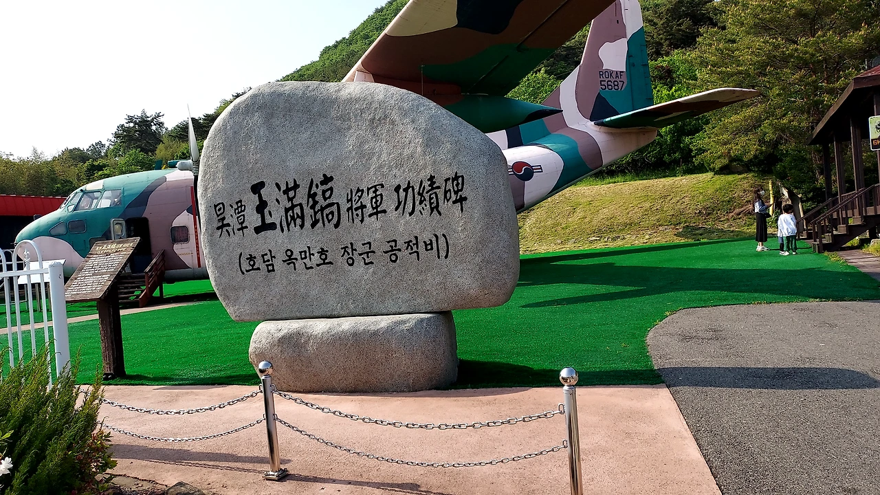 호담 항공 전시관 안으로 들어갔다. 호담은 전 공군참모총장 옥만호장군의 호이다. 전시관은 고향 사랑을 실천하고 아이들에게 꿈과 희망을 키우려는 옥만호 장군의 뜻을 받들어 설치되었다고 한다. 전시관의 주제는 ‘인간의 꿈 비행기’, ‘꿈의 실현, 그리고 비행기’, ‘인간의 새로운 도전, 우주여행’, ‘대한민국 공군의 발자취’ 등 네 가지였다.