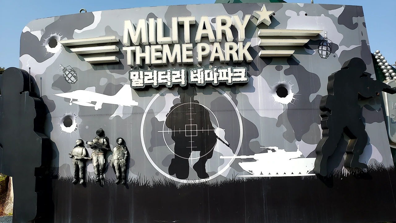 밀리터리 테마파크(MILITARY THEME PARK)? 나에게는 이 말이 생소하다. 눈앞에 보이는 비행기가 군 관련 공원임을 암시한다. 우리 주변에서 ‘테마’나 ‘파크’는 많이 사용한다. ‘무등 파크 맨션’ 등 아파트 이름으로 사용되고, ‘테마’는 ‘빛고을 농촌 테마공원’과 같이 공원의 이름에서 많이 사용한다. 그런데 ‘밀리터리’는 얼른 이해하지 못했다. 그러다가 영문으로 된 글자를 보고 알 수 있었다.